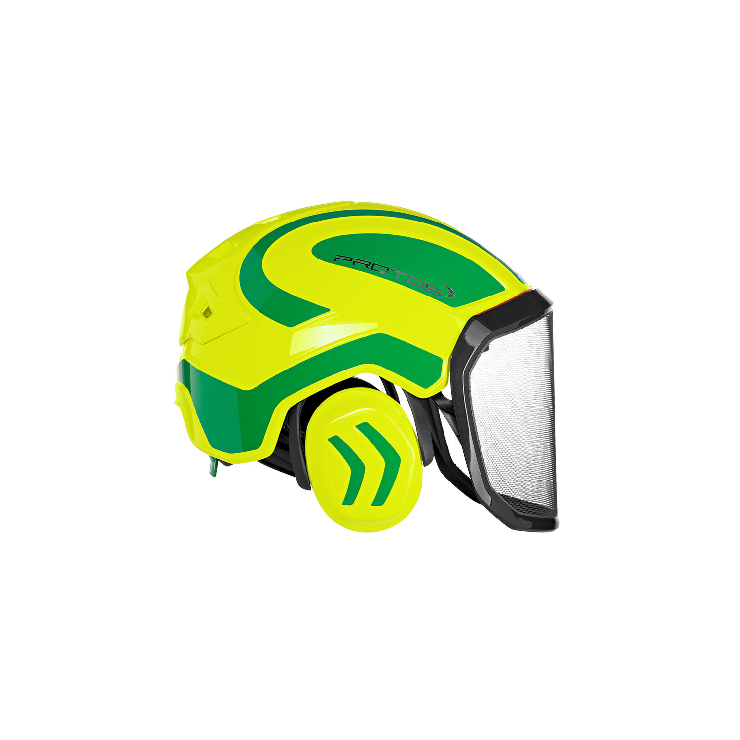Forst und seine extremen Anforderungen waren und sind die Ausgangslage für die Entwicklung von PROTOS®. Vom Visier bis zum Gehörschutz sind alle Bauteile integral konstruiert und verhindern ein Hängen?bleiben an Ästen, Sträuchern oder Dornen. Auch wenn sich der Gesichts- oder Gehör?schutz in Parkposition befinden, hält PROTOS® perfekt am Kopf.
