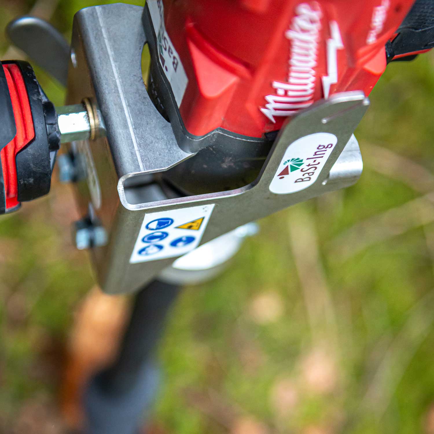 Der DrillFast von BaSt-Ing ist der erste Erdbohrer, der mit einem leistungsstarken Schlagschrauber angetrieben wird. Mit ihm lassen sich Containerpflanzen als auch wurzelnackte Pflanzen fachgerecht und wirtschaftlich setzen. Auch im Zaunbau findet der DrillFast Anwendung. Fixiert wird der DrillFast über den bereits bekannten ValLink. Im Gegensatz zu jedem anderen Erdbohrgerät mit einem festen Getriebe, bekommt man bei der Benutzung des DrillFast keine Drehmoment-Stöße ab. Der DrillFast dreht im Leerlauf 2000 Umdrehungen. Wenn ein Widerstand kommt, dann setzt das Schlagwerk ein, der die Widerstände zur Seite klopft. Man hat keinen großen Ermüdungseffekt und kann innerhalb einer Stunde bis zu 100 Pflanzen setzen. Je nach Bodengegebenheiten braucht man dabei eine hohe Akku-Kapazität (10 Ah pro 100 Pflanzen). Regelmäßiges Nachladen ist bei einer längeren Benutzung also notwendig.