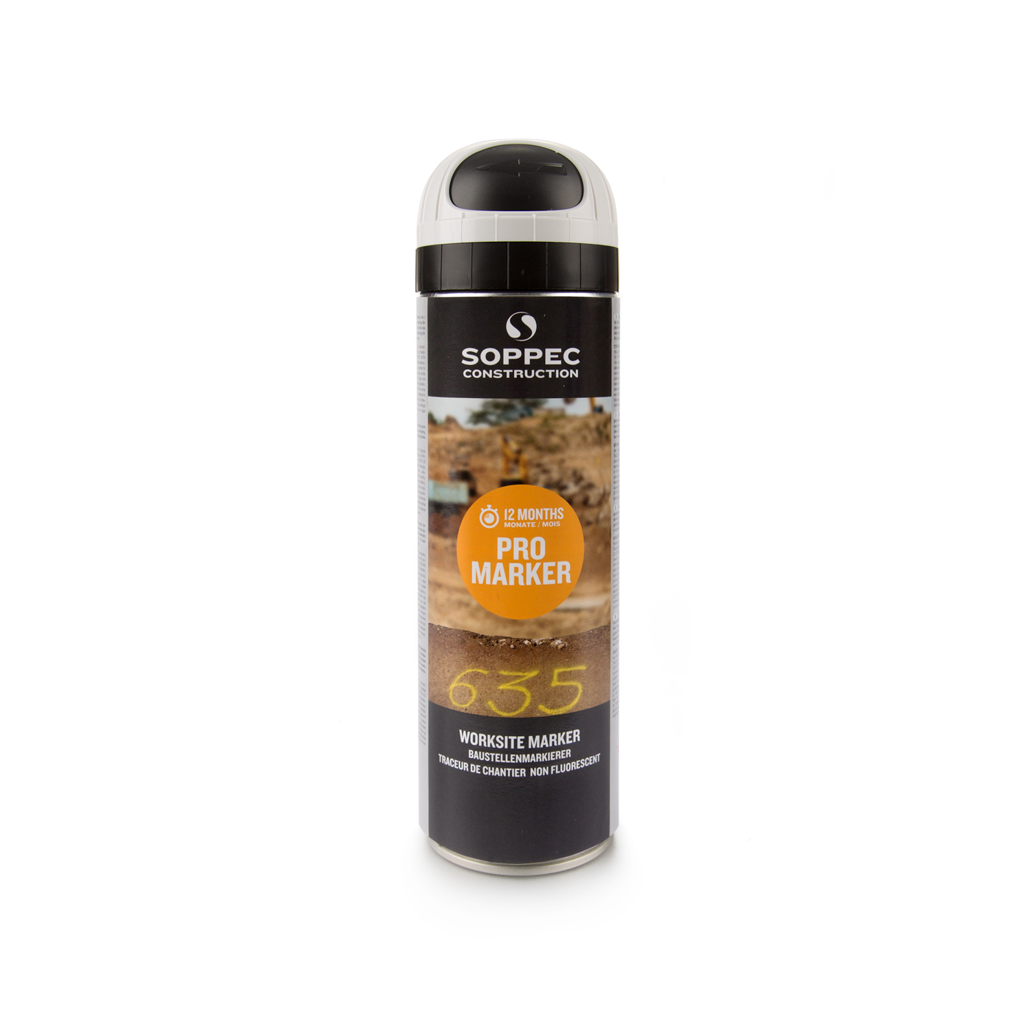 Dieser Spray ist der Baustellenmarkierer in Normalfarben. Er ist für provisorische Markierungen konzipiert und bis zu 12 Monate sichtbar.