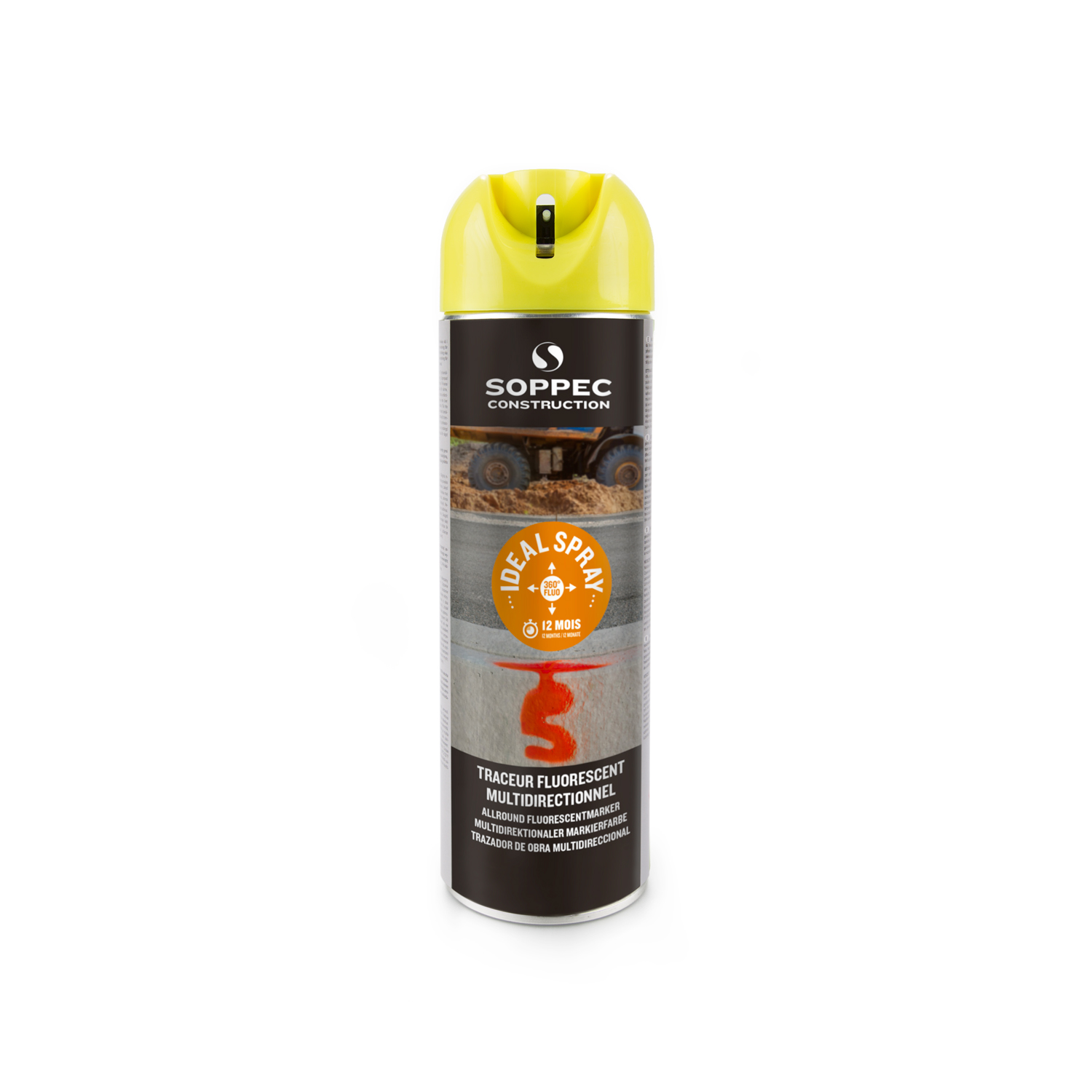 Dieser Spray ist der Baustellenmarkierer in Leuchtfarben. Er ist für provisorische Markierungen konzipiert und bis zu 12 Monate sichtbar. Soppec Sprays zeichnen sich durch große Wetterbeständigkeit, zuverlässiger Arbeitsweise, einem gleichmäßigen Sprühstrahl und der ergonomischen Dosenklappe in Farbe des Doseninhalts aus. Sie sind frei von FCKWs, FCKs, Blei, Kadmium und Toluol. Downloads 225-RT-Fluo TP Version 34_1 28_02_2023