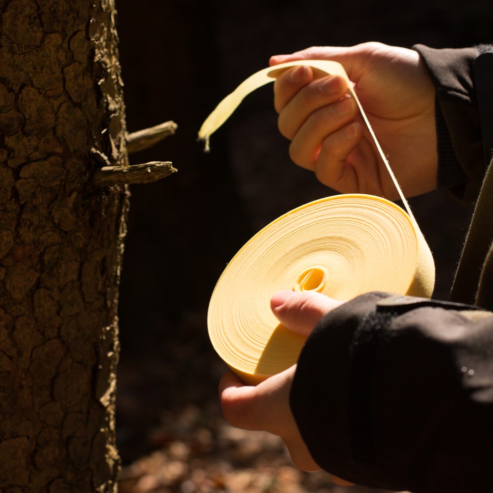 Diese Markierbänder sind aus sehr reißfestem Papier und verrotten nach ein bis zwei Jahren.