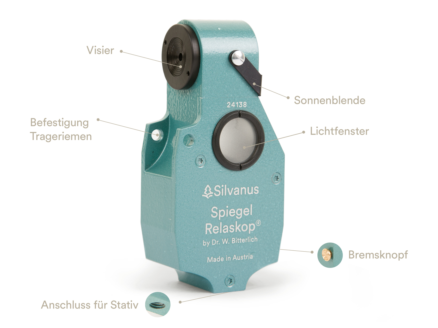 • Jakobsstab: Dient als 137 cm langes Einbeinstativ in Verbindung mit dem "Kugelgelenk-Adapter". Er ermöglicht ein schnelles und flexibles Messen.